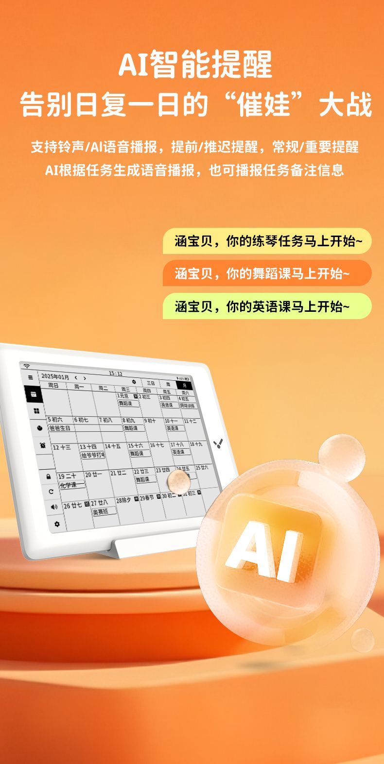 支持铃声/Al语音播报,提前/推迟提醒,常规/重要提醒,AI根据任务生成语音播报,也可播报任务备注信息