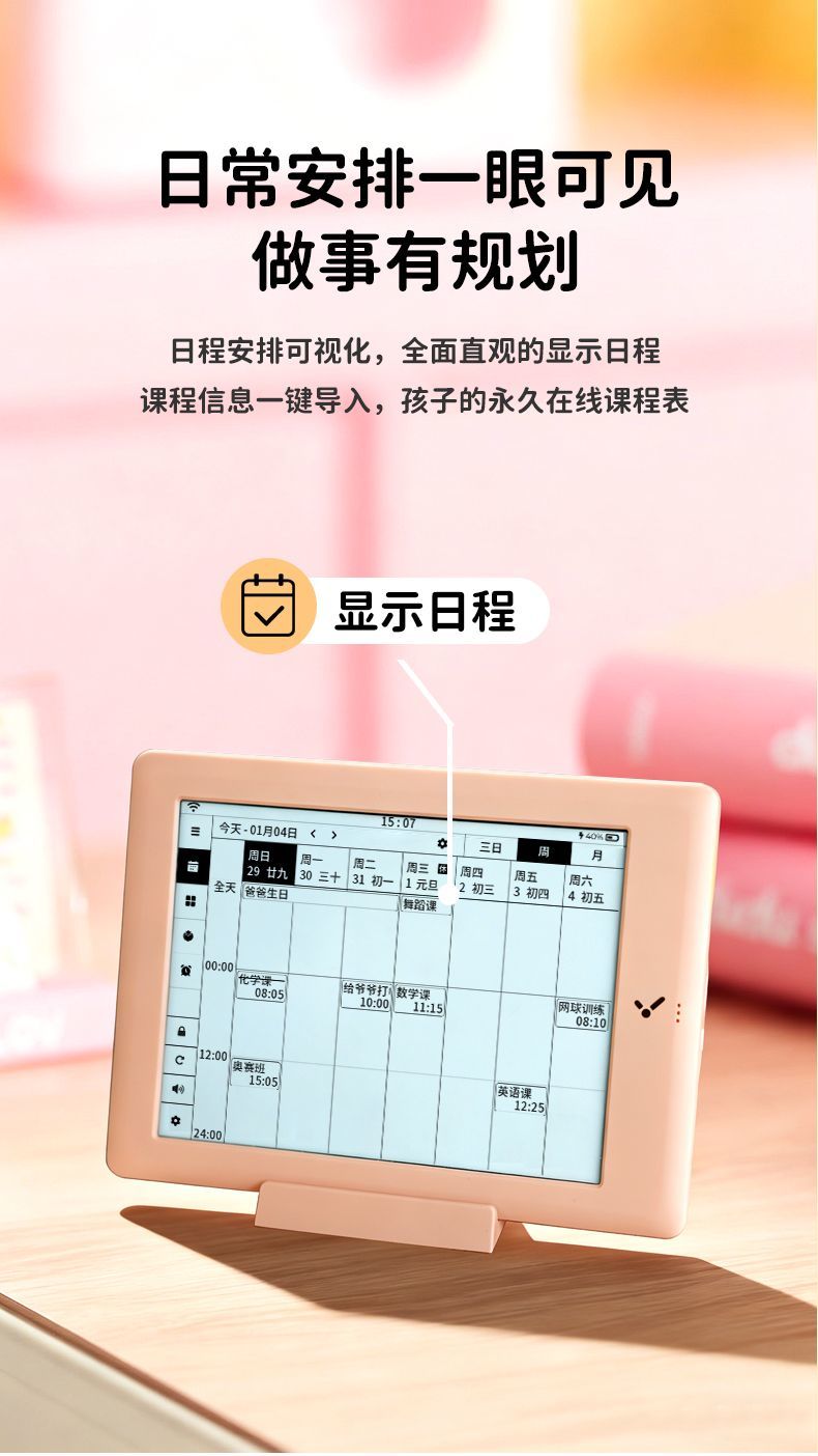 日程安排可视化,全面直观的显示日程,课程信息一键导入,孩子的永久在线课程表